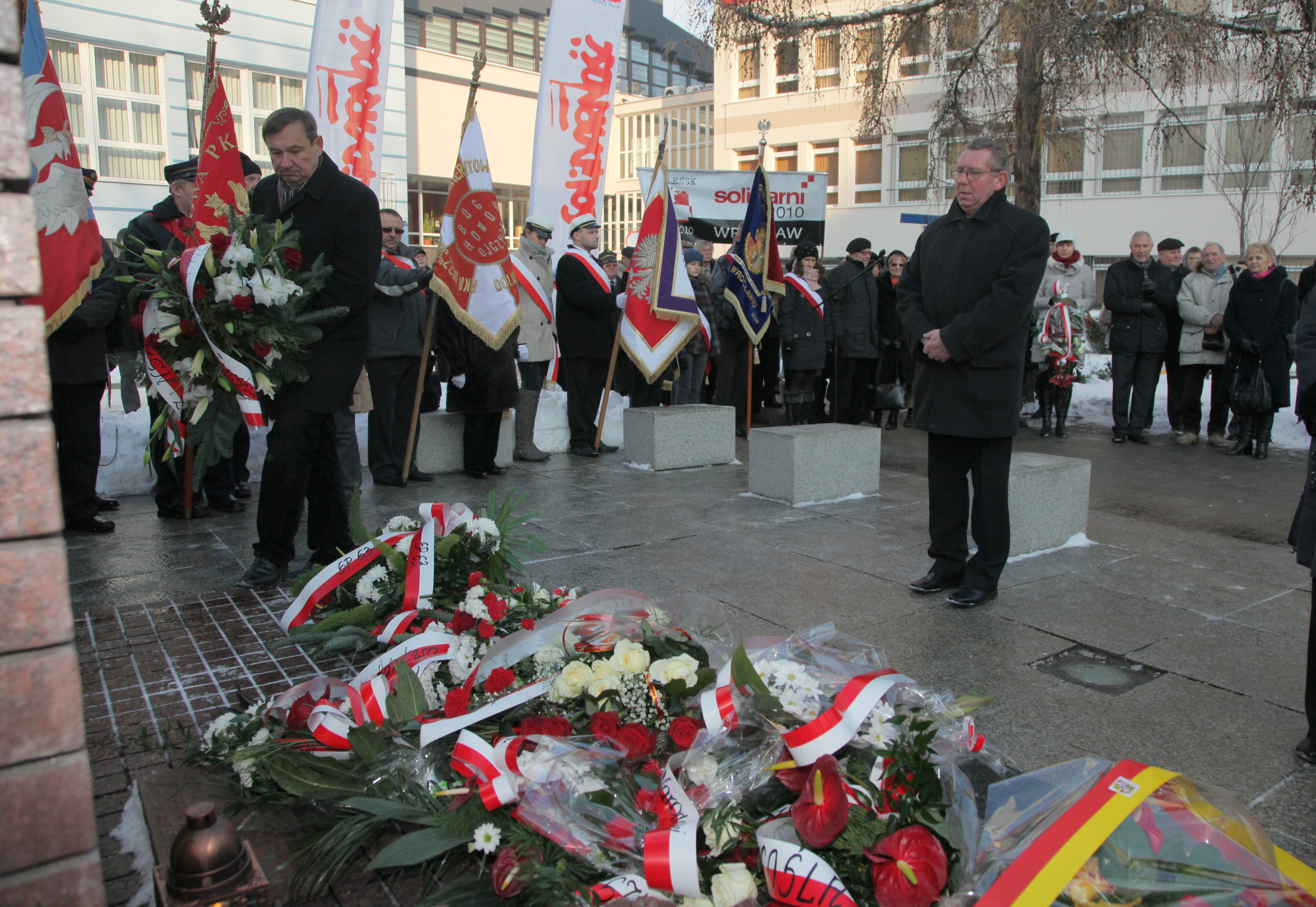 Organizowane po latach rocznicowe obchody stanu wojennego nie omijają murów uczelni. 7 grudnia 2012 roku solidarnościowe środowisko regionu dolnośląskiego przybyło do auli w Gmachu Głównym PWr, by uczestniczyć we wręczeniu odznaczeń „Niezłomni” i obejrzeć spektakl „A źródło wciąż bije...” w wykonaniu młodzieży z XVII LO im. Agnieszki Osieckiej. Kolejnym rocznicowym wydarzeniem było otwarcie 12 grudnia wystawy „586 dni stanu wojennego” w Archiwum Państwowym (ul. Pomorska 2). Głos zabrali jego dyrektor dr Janusz Gołaszewski i prof. Włodzimierz Suleja, dyrektor Oddziału IPN we Wrocławiu (treść zamieszczamy niżej). Można było zrobić sobie zdjęcie z Majorem z Pomarańczowej Alternatywy („lepszy pomarańczowy major niż czerwony generał”) i innymi bohaterami epoki, wybrać pocztówkę o stosownej tematyce, wziąć reprint Monitora Dolnośląskiego z 14 grudnia 1981 r. i oczywiście obejrzeć bogatą wystawę. W otwarciu wystawy uczestniczyła licznie młodzież szkolna. Tegoż dnia złożono kwiaty pod tablicami Solidarności i śp. Piotra Bednarza. Wieczorem w XVII LO wręczano ponownie odznaczenia „Niezłomni”, odbył się też występ młodzieży z tej szkoły. 13 grudnia odprawiono w intencji ofiar stanu wojennego mszę św. w kościele Najśw. Serca Pana Jezusa, złożono kwiaty pod tablicami śp. doc. Tadeusza Huskowskiego (bud. D-2) i śpTadeusza Kosteckiego (A-1) oraz pod obeliskiem Solidarności, gdzie głos zabrali przedstawiciele władz regionalnych związku i Politechniki Wrocławskiej. W Urzędzie Wojewódzkim wręczono odznaczenia państwowe (wśród odznaczonych przez prezydenta RP jest legenda wrocławskiej Solidarności Czesław Borowczyk z Dolmelu). Finalnym punktem obchodów była uroczysta msza święta za Ojczyznę i ofiary stanu wojennego odprawiona we wrocławskiej katedrze.