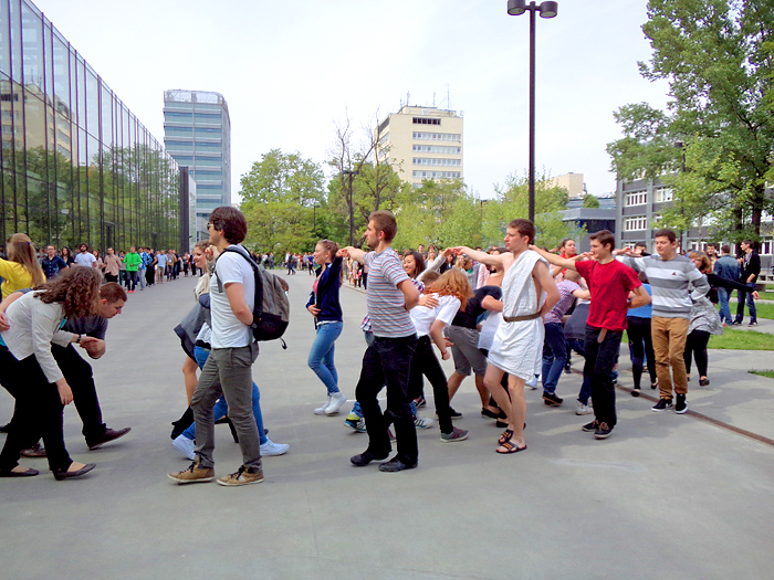 - Na facebooku zgłosiło się około 100 osób, ale przyszło więcej – dodaje Agnieszka. Wśród tańczących można było dostrzec m.in. szefową samorządu studenckiego Zuzannę Hazubską, świeżo wybranego króla Juwenaliów – Grzegorza Dębskiego i tajemniczego studenta w stroju… Zeusa. Wspólny polonez był jednym z punktów programu Qulturaliów. Jakie jeszcze wydarzenia kulturalne czekają nas podczas Juwenaliów – sprawdźcie tutaj. isz