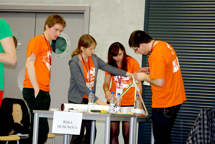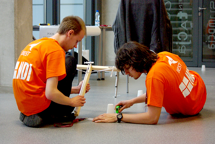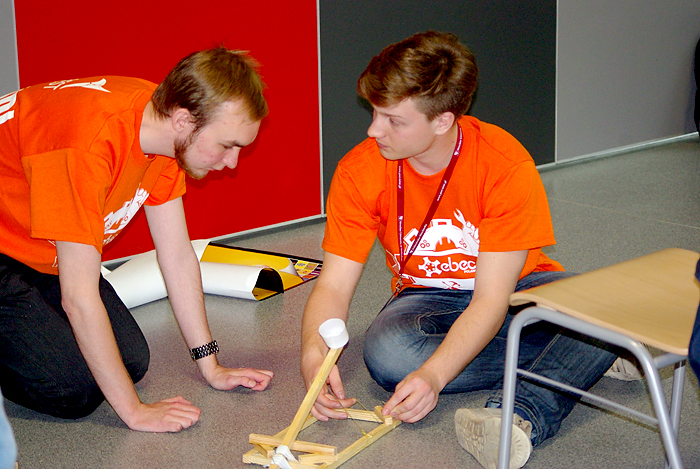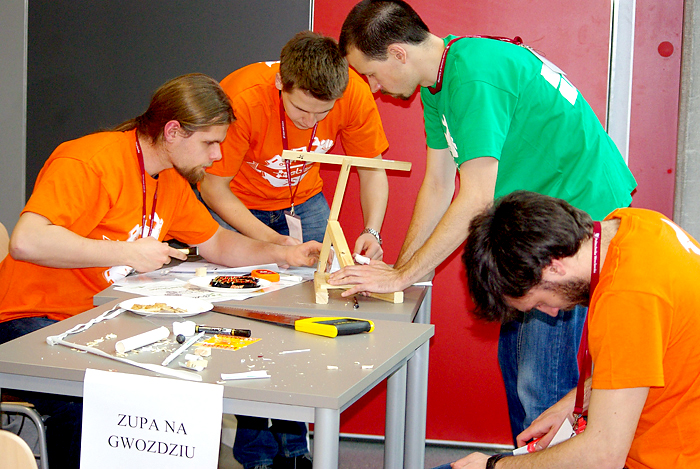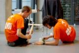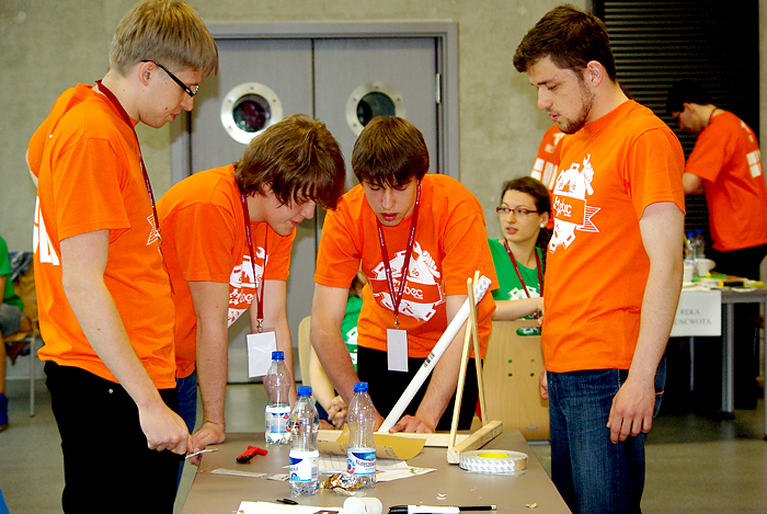 W Strefie Kultury Studenckiej trwają rozgrywki lokalnego etapu konkursu inżynierskiego EBEC Poland. W dwóch kategoriach – team design i case study – rywalizuje po siedem czteroosobowych drużyn W kategorii team design drużyny mają wybudować katapultę. Mogą do tego użyć materiałów dostępnych w sklepiku, który przygotowali organizatorzy. Za 1000 „ebec-notów” mogą kupić np. drewienka czy taśmę klejącą. Po skonstruowaniu katapult drużyny będą rywalizować w strzelaniu z nich. Mają do dyspozycji po 4 pociski. Dwa z nich powinny zostać wyrzucone na odległość 3 metrów, pozostałe dwa – pięciu. Wszystkie one muszą ominąć metrowej wysokości przeszkodę, ustawioną w odległości metra od miejsca strzelania. Wygra ta z drużyn, która osiągnie wyniki najbardziej zbliżone do oczekiwanych. Z kolei w case study zadaniem jest opracowanie optymalnego planu zagospodarowania terenów pofabrycznych na Ursynowie, w taki sposób, by mieszkańcy okolicy mieli z tego jak największą korzyść. Priorytetem jest tu zapewnienie miejsc pracy osobom bezrobotnym, które kiedyś pracowały w fabryce na Ursynowie. Każda z drużyn ma do dyspozycji nieprzekraczalną sumę 5 mln zł. Wszystkie drużyny mają czas na przygotowanie swoich prac do godz. 14.30. Potem każda zaprezentuje się przed trzyosobowym jury, w którego skład wejdą przedstawiciele Politechniki Wrocławskiej, Naczelnej Organizacji Technicznej i BEST. Zwycięskie drużyny w obu kategoriach będą reprezentować Politechnikę Wrocławską w etapie ogólnopolskim, który odbędzie się 22-23 maja w Gliwicach. Konkurs został zorganizowany przez Stowarzyszenie Studentów BEST (Board of European Students of Technology). Także dziś podobne eliminacje odbywają się również w Krakowie, Gliwicach, Łodzi, Gdańsku i Warszawie. mlO konkursie również tutaj