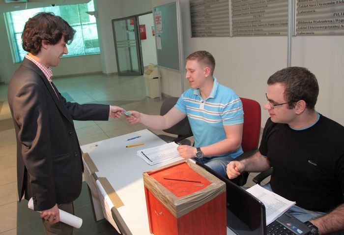 Minimalną potrzebną liczbę głosów (55) otrzymały Joanna Bielech i Paula Schabińska. Pozostał jeden wakat. W poniedziałek zakończyły się uzupełniające wybory do Wydziałowej Rady Samorządu Studentów Wydziału Elektrycznego Politechniki Wrocławskiej. Liczebność samorządu na wydziale zależy od składu rady wydziału. Studenci powinni mieć w niej 20 proc. miejsc. Dotąd odpowiadało to ośmioosobowej reprezentacji. Ponieważ skład rady poszerzył się ze względu na zwiększoną liczbę samodzielnych pracowników naukowych, a ze studenckiej reprezentacji odeszły dwie osoby (w tym jedna, która ukończyła studia), do zapełnienia były trzy miejsca. Zgłoszono dziewięcioro kandydatów, którzy w głosowaniu otrzymali:: Joanna Bielech, I rok ETK – 61 głosów Agnieszka Galla, II rok AiR – 21 Marek Justyniarski, II rok AiR – 24 Andrzej Mizera, I rok AiR - 10 Piotr Nowak, II rok AiR - 11 Bartosz Pałka, II rok ETK - 28 Angelika Radzińska, I rok AiR - 8 Paula Schabińska, III rok AiR - 59 Rafał Szczepankiewicz, II rok AiR - 27 Minimalną potrzebną liczbę głosów (55) otrzymały Joanna Bielech i Paula Schabińska. Pozostał jeden wakat, a więc niezbędna będzie druga tura wyborów. Aktualny skład Wydziałowej Rady Samorządu Studentów Wydziału Elektrycznego: Michał Kula, Marek Jarzębski, Sebastian Schneider, Joanna Bielech, Wojciech Bułat, Paula Schabińska Maria Kisza