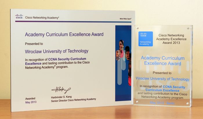 Politechnika Wrocławska ma najlepszą Akademię Cisco w Europie Centralnej i Wschodniej. Wyróżnienie w imieniu uczelni odebrał w Berlinie kierownik akademii na PWr dr inż. Waldemar Grzebyk. Politechnikę nagrodzono za program szkoleniowy CCNA Security. Jego uczestnicy zdobywają umiejętności niezbędne do instalacji, naprawy i monitorowania sieci. Kursanci uczą się również, jak zapewnić integralność, poufność oraz dostępność usług i urządzeń sieciowych. Akademia Cisco powstała na Politechnice Wrocławskiej w 2003 r. w ramach programu Cisco Networking Academy. Szkolenia w formie wykładów i ćwiczeń laboratoryjnych prowadzi trzech wykładowców z Wydziału Elektroniki: dr inż. Waldemar Grzebyk, dr inż. Marcin Głowacki oraz mgr inż. Jarosław Janukiewicz. Program akademii jest skierowany do uczniów szkół ponadgimnazjalnych, studentów szkół wyższych oraz osób, które chcą podnieść kwalifikacje zawodowe - umiejętności praktyczne zdobyte podczas szkoleń są zwykle traktowane przez pracodawców jako doświadczenie zawodowe. Joanna Pająk