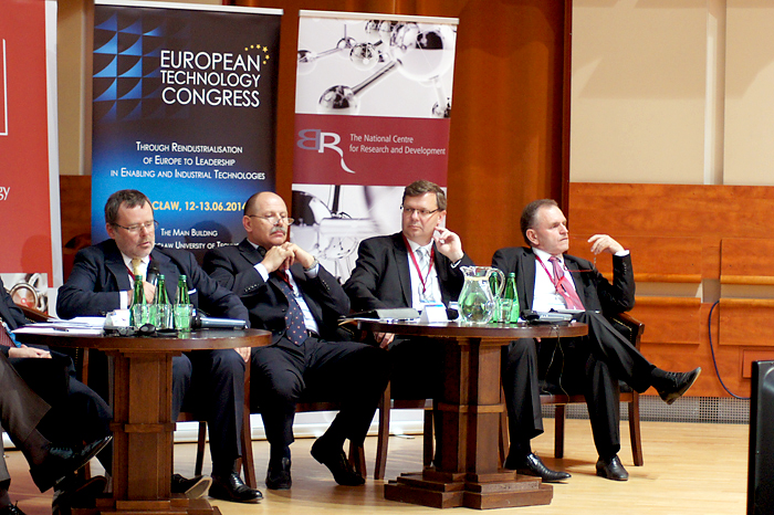 Drugi panel koncentrował się wokół KET, czyli Key Enabling Technologies. W ten sposób Komisja Europejska w 2009 r. określiła zaawansowane technologie przyszłości „oparte na wiedzy, wiążące się z intensywnością badań, krótkimi cyklami innowacji, dużymi nakładami kapitałowymi oraz wysokimi kwalifikacjami pracowników". Dyskusję prowadził prof. Gabriel Crean, wiceprezes Francuskiej Komisji Energii Atomowej i Energii Alternatywnych oraz Przewodniczący Grupy Wysokiego Szczebla ds. Kluczowych Technologii przy Komisji Europejskiej. Wzięli w niej udział Emmanuel Forest, wiceprezes Bouygues group, Xabier Goenaga z Instytutu Studiów Perspektyw Technologicznych w Joint Research Centre, prof. Jacek Guliński, podsekretarz stanu w Ministerstwie Nauki i Szkolnictwa Wyższego, Khalil Rouhana, dyrektor Dyrekcji Generalnej ds. Sieci Komunikacyjnych, Treści i Technologii Komisji Europejskiej, Giuseppe Tartaglione z firmy Volkswagen, Peter van Staa, wiceprezes firmy Robert Bosch i Andreas Wild, dyrektor ENIAC Joint Undertaking. - KET to jeden z głównych priorytetów jeśli chodzi o innowacje w Europie, na czele ze zdrowiem i energią – tłumaczył Xabier Goenaga. – By one powstawały, konieczna jest współpraca przy różnych inicjatywach ponadregionalnych. Sami nie jesteśmy w stanie wiele zdziałać. Profesor Jacek Guliński podkreślał z kolei, że Polska w ostatnich latach wydała pięć miliardów euro na rozwijanie swoich ośrodków badawczo-rozwojowych. – Teraz mamy niespotykaną w historii szansę, by dzięki unijnym programom wykorzystać je do połączenia nauki i biznesu. Problemy ze współpracą tych dwóch światów nie są już kwestią pieniędzy. To kwestia zarządzania, naszej mentalności i zapewne także różnych rozwiązań prawnych. Myślę, że musimy stworzyć nową politykę naukową w naszym kraju. Podsekretarz zaznaczał także, że reindustrializacja Europy nie jest możliwa bez silnego wsparcia ośrodków badawczo-rozwojowych i bez Polski, której przemysł jest ważny w skali Europy. Rozumiemy wyzwanie, przed jakim stajemy. Małgorzata Jurkiewicz, Lucyna Róg