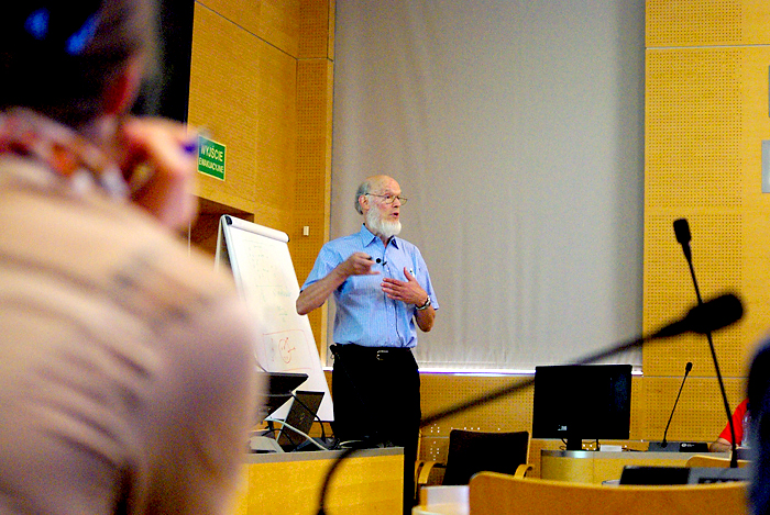 Profesor David Siegmund z Uniwersytetu Stanforda wygłosił pierwszy wykład otwarty na Politechnice Wrocławskiej pt.: „Intersection of statistical mechanics, operations research and genetics”. Jego wykłady i seminaria na PWr organizowane są w ramach programu Visiting Professors W poniedziałek do sali Senatu Politechniki Wrocławskiej przybyło ponad trzydziestu wrocławskich matematyków, aby wysłuchać wystąpienia tego uznanego amerykańskiego statystyka, który przedstawił historyczny przegląd matematycznych modeli powstałych na początku XX wieku. Miały one wyjaśniać badania operacyjne, teorie kinetyczne i genetyczne. Były to między innymi modele: Ehrenfesta (1914) i Westgrena (1916) oraz A.K. Erlanga (1914), które wyjaśniały na przykład paradoks między drugą zasadą termodynamiki i jej znaczeniem w mechanice statystycznej, umiarkowaną liczbę połączeń w wymianie telefonicznej, i sprawdzały eksperymentalnie teorię ruchów Browna.